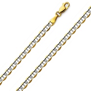 3.5mm 14K Two-Tone Gold Solid Flat Mariner Chain Necklace 16-24in