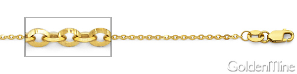 As a chic addition to pendants, diamond-cut detailing and polished finish on solid 14K yellow gold add a captivating sparkle and shine to this cable chain. Its 1.6mm beveled, oval links exude high quality, durability, and elegance.