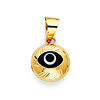 Various cultures consider wearing evil eye jewelry as a way to protect themselves from harm. This mini round charm embues that meaning in an elegant yet discreet way. Diamond cuts along the 14K yellow gold material add a shimmering touch. Add one of our thinner gold chains to create your own spiritual necklace. Dimensions: 9mm x 10mm or 1/3 inch x 2/5 inch approx. Jewelry box included with purchase. |