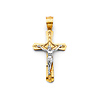 Beautifully crafted, this solid 14K yellow gold crucifix features diagonal diamond cuts along the slightly raised edges, adding an artistic twist to the classic design. The center has a dynamic, waffle pattern behind the depiction of Jesus during His crucifixion. Its tapered bail fits necklaces with a width of 3mm or less approximately. With a gleaming finish, this pendant makes an elegant reminder for men and women of the Catholic faith. Dimensions: 12mm x 19mm (25mm with bail) or 0.5 inch x 0.7 inch approx. Jewelry box included with purchase. |