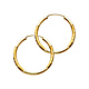 Satin finishes with leaf-style diamond cuts on the sides add a stylish touch to the traditional polished round hoops. Crafted in 14K yellow gold and endless backs, these medium-size earrings emanate a high quality, designer look that women can wear from day to night. Dimensions: Diameter = 25mm or 1 inch. Thickness = 2mm. Jewelry box included with purchase. |
