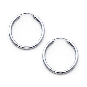 Sleek and simple, these small hoop earrings shine in 14K white gold. They secure with endless closures which reduce snagging and maintain a classy round design. Dimensions: Diameter = 15mm or 3/5 inch. Thickness = 2mm. Jewelry box included with purchase. |