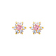 Flower Birthstone Color CZ Stud Earrings in 14K Yellow Gold
