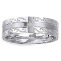 This exquisite 7mm wedding band is a timeless symbol of love and commitment. Crafted from lustrous 14K white gold, it features intricate scroll engraving and is adorned with brilliant round-cut diamonds, adding a touch of elegance and sparkle to your special day.